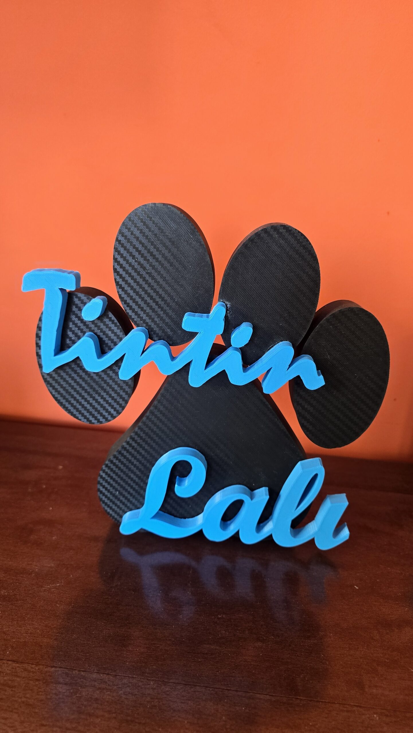 Decoración ideal para amantes de mascotas, una huella con los nombres de las mascotas impresos en 3D. El precio varia según tamaño y número de nombres. Ponte en contacto con nosotros y pregunta sin compromiso