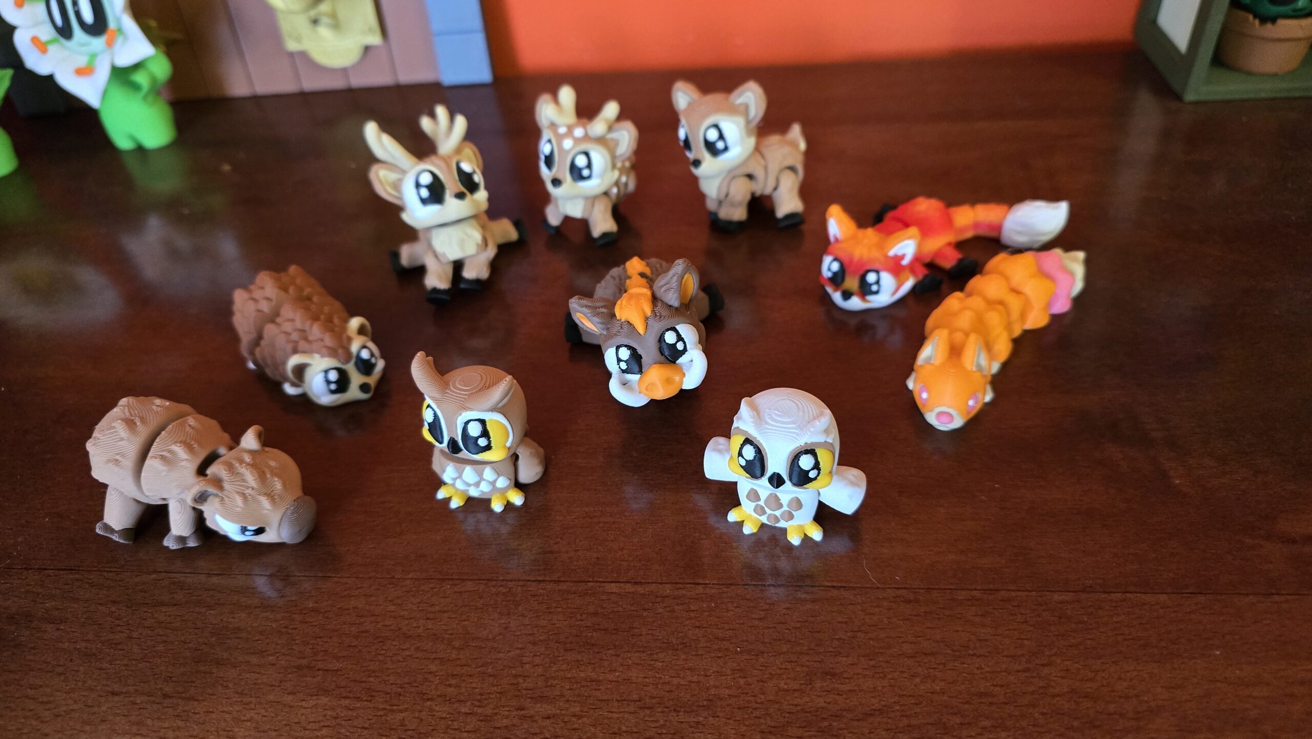 Adorables animales del bosque pequeños, impresos en 3D articulados, familia de ciervos, jabalí, buhos, erizos, capibaras, ardillas, zorros, etc..