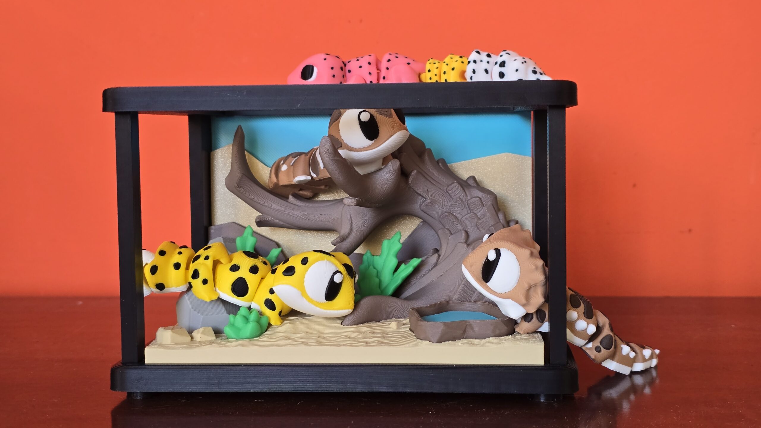 Adorables geckos y un dragón impresos en 3D. Varios modelos, podéis adquiridlos solos o con un diorama que simula un terrario