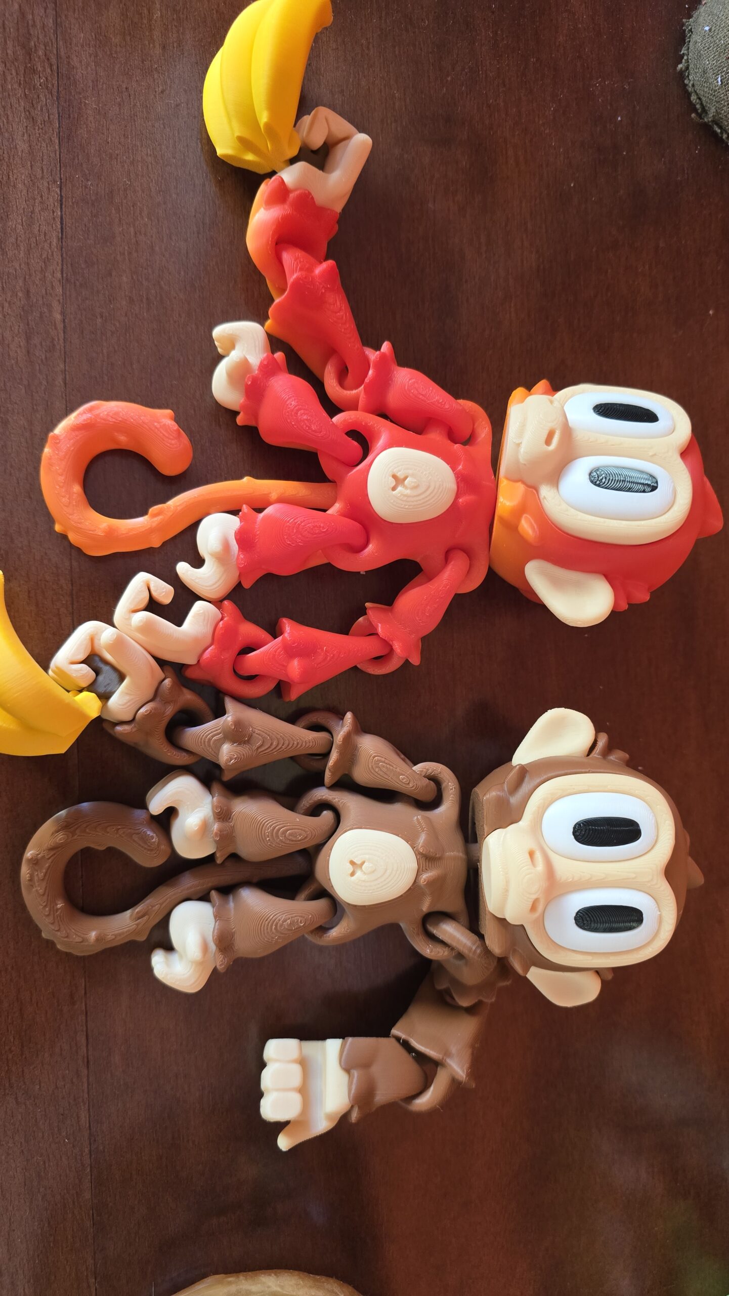 Adorables monos articulados, se pueden unir entre ellos por las manos, incluyen un plátano y una planta imantada para que puedan estar colgando. Tamaño aproximado 16cm x 22 cm