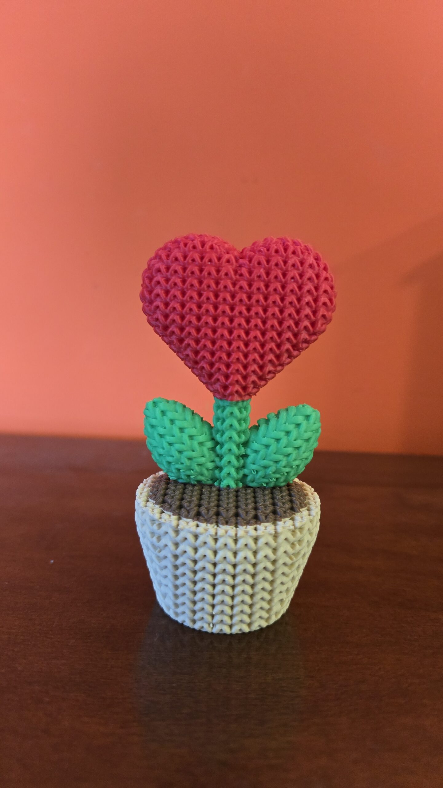 Rosa con maceta impresa en 3D imitando crochet. Ideal regalo San Valentín. Tamaño aproximado 10,5cm